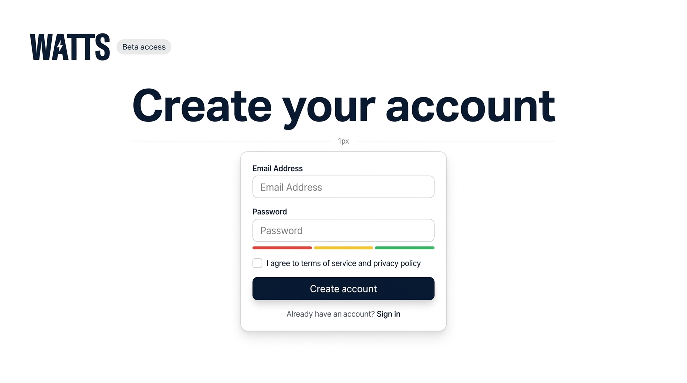 User Account Creation Interface for Watts Service