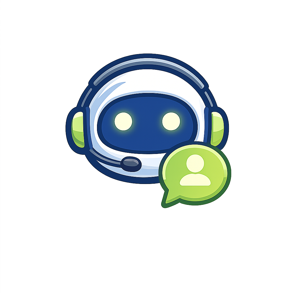 A friendly robot character with a headset and glowing eyes, accompanied by a chat bubble. This image symbolizes AI communication and engagement.