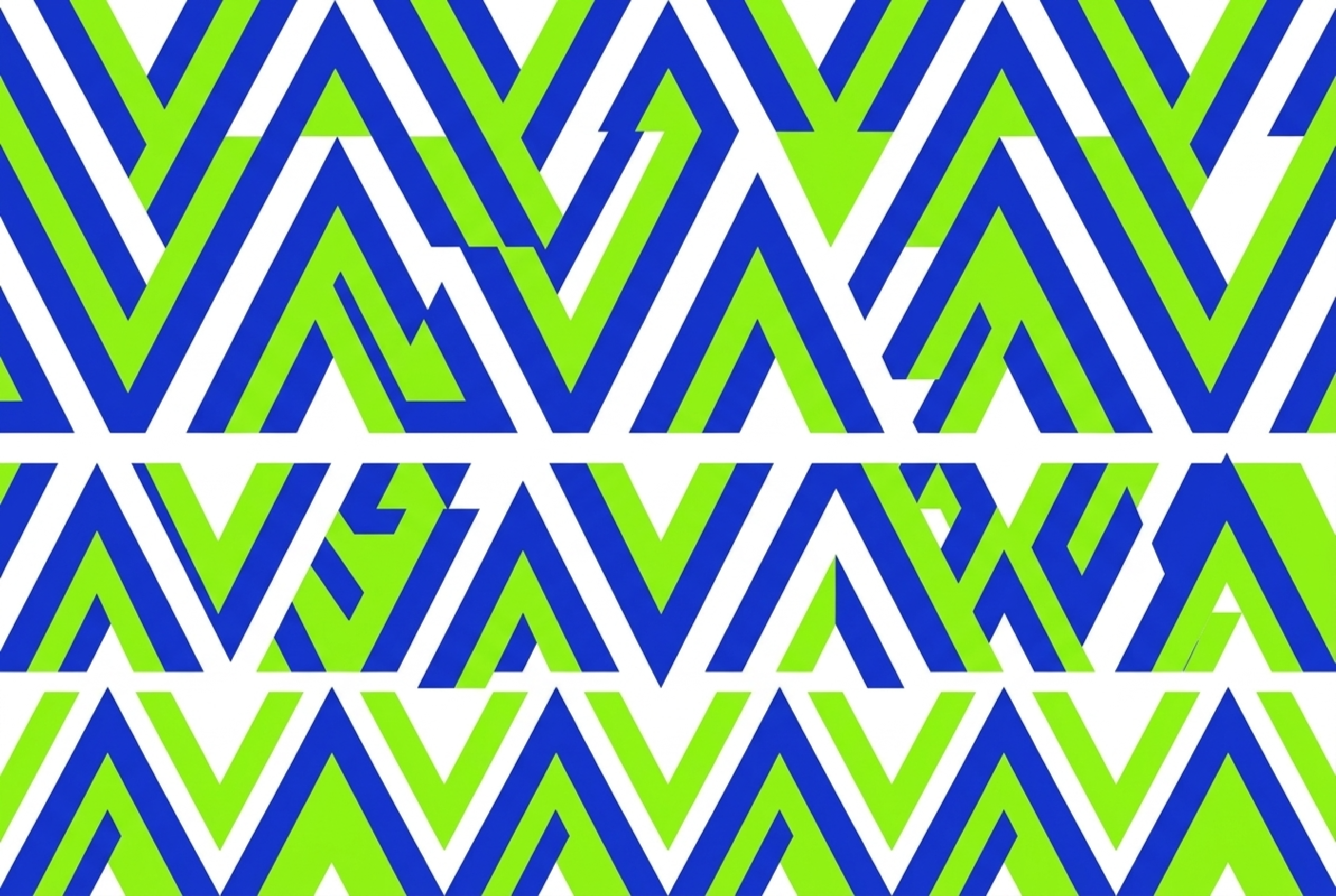 An eye-catching geometric pattern featuring alternating blue and green zigzag shapes arranged in a repetitive design. The bold colors create a dynamic visual effect.