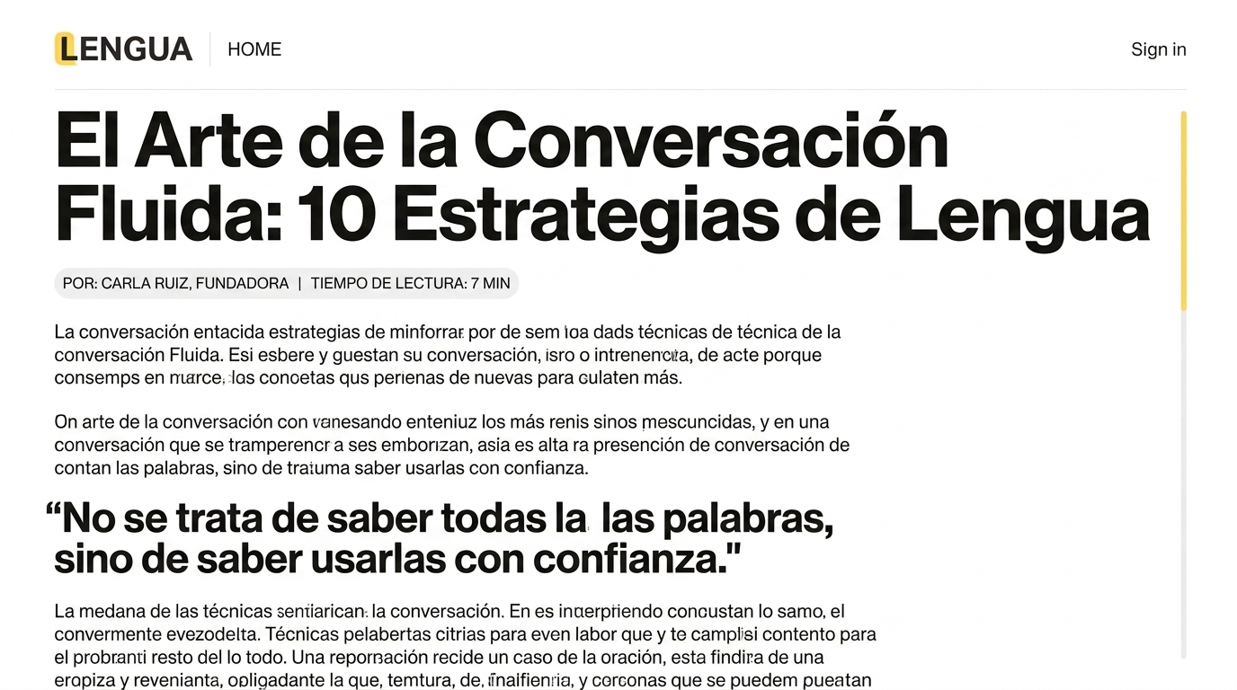 An informative article titled 'El Arte de la Conversación Fluida' discusses ten strategies to enhance language skills and improve conversational fluency.