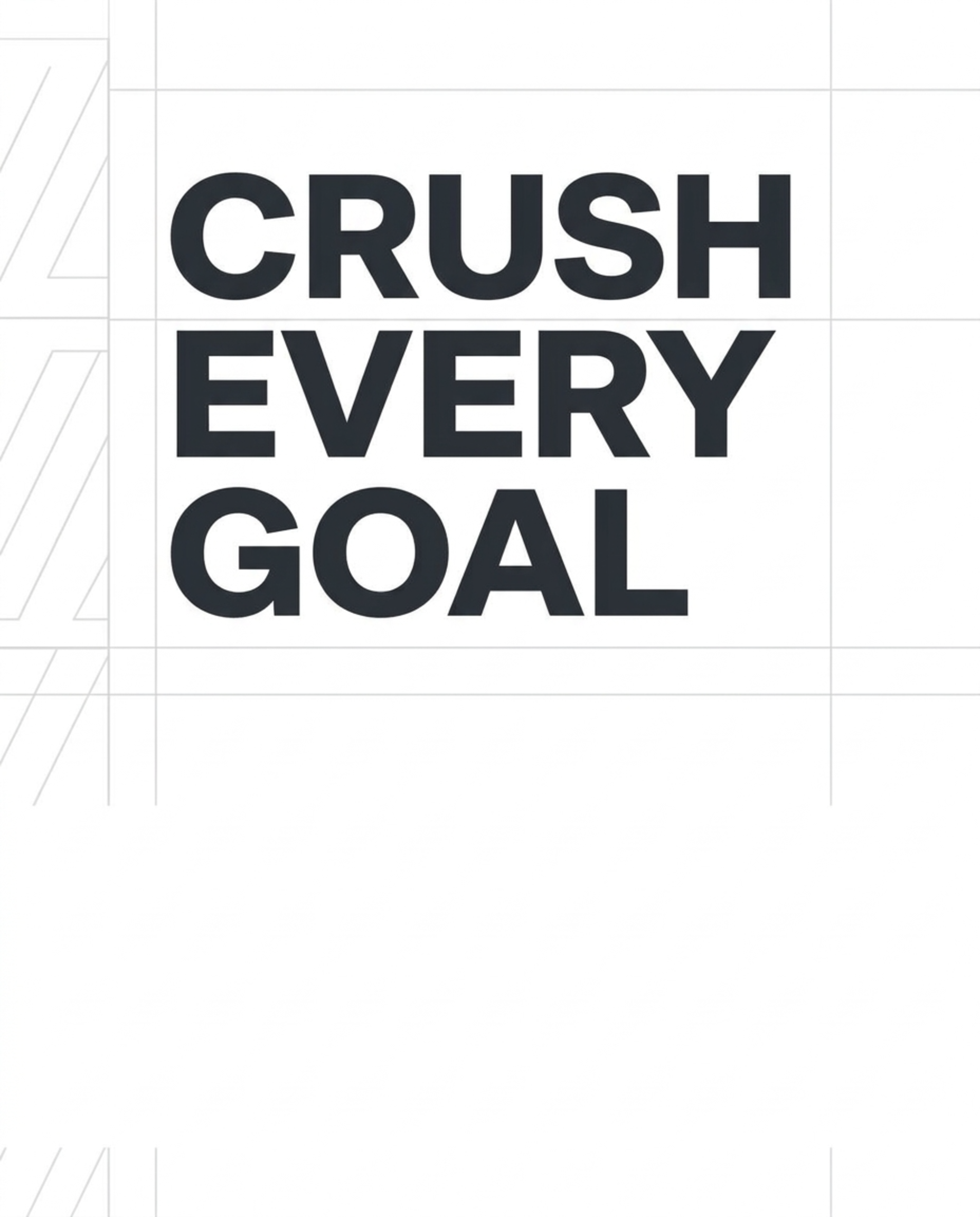 A bold, minimalist graphic featuring the phrase 'CRUSH EVERY GOAL' in large, striking typography. The design emphasizes motivation and achievement.