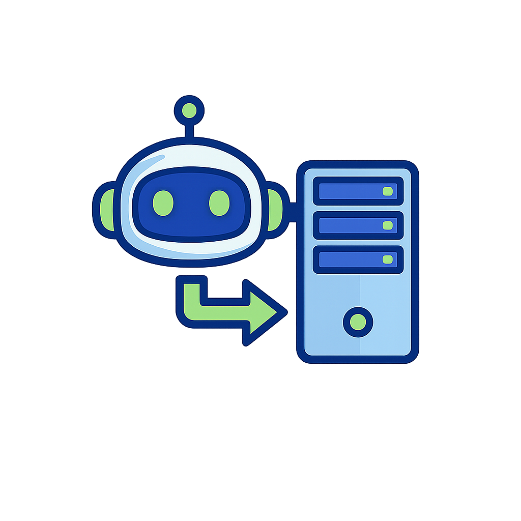 A vibrant illustration featuring a friendly robot with big eyes and a server. The robot is connected to the server, symbolizing data transfer or communication.