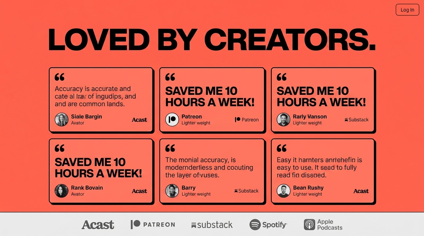 A vibrant image featuring testimonials from various creators about the benefits of a platform. Each quote highlights how the platform has saved them time and improved their work.