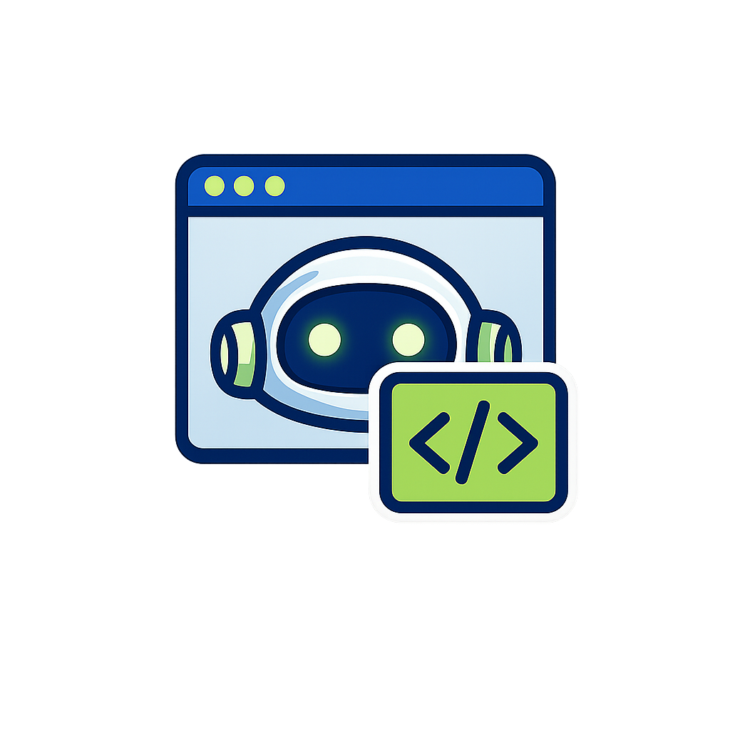 Cute Robot Icon with Coding Symbol on Screen
