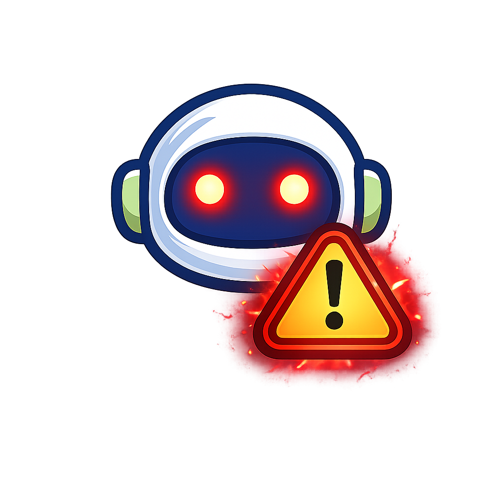 A cartoon-style robot head with glowing red eyes, accompanied by a bright warning sign. The background features a subtle gradient, enhancing the robot's futuristic vibe.