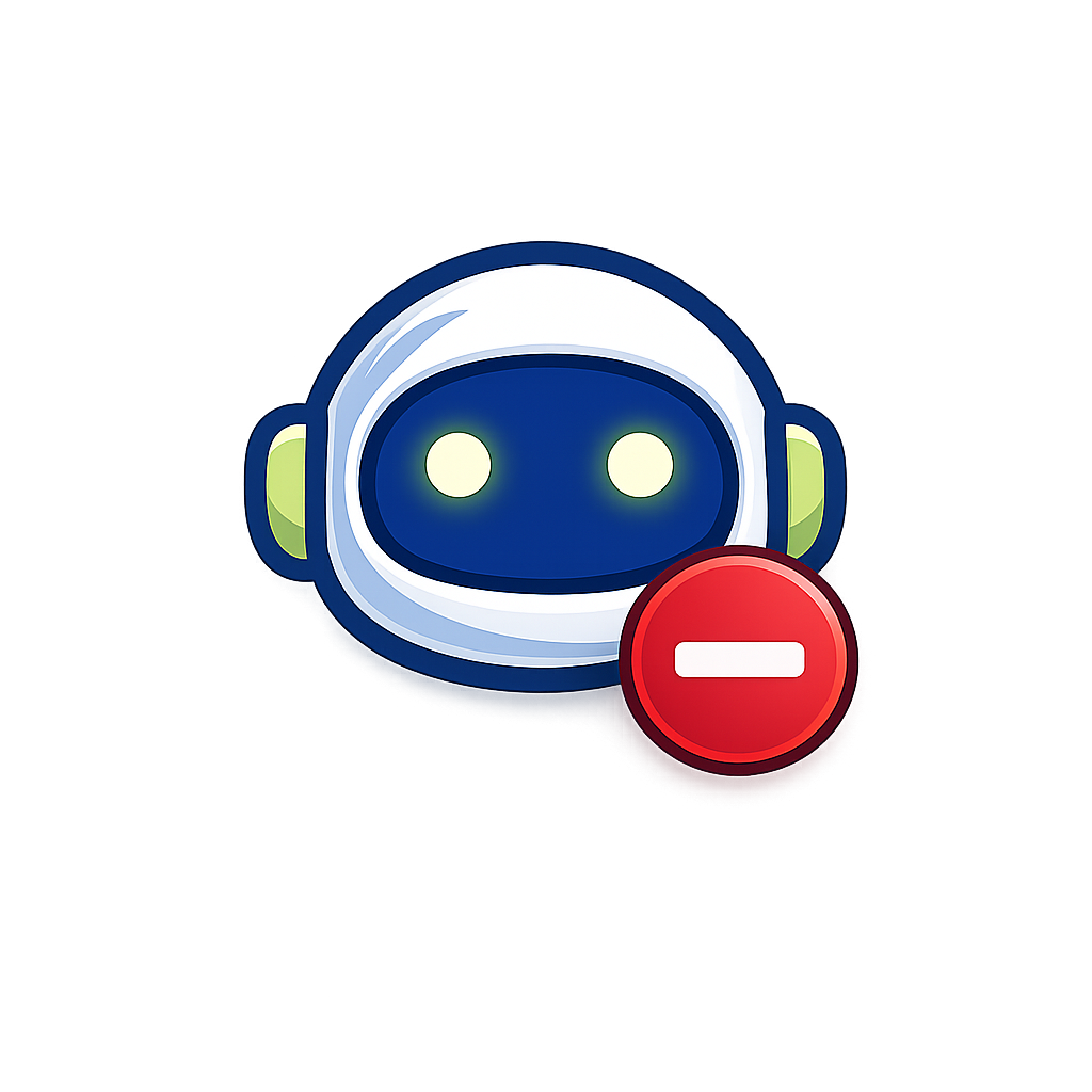 A friendly cartoon robot with a white helmet and glowing eyes, accompanied by a red no entry sign. The design is playful and modern, ideal for tech-related themes.