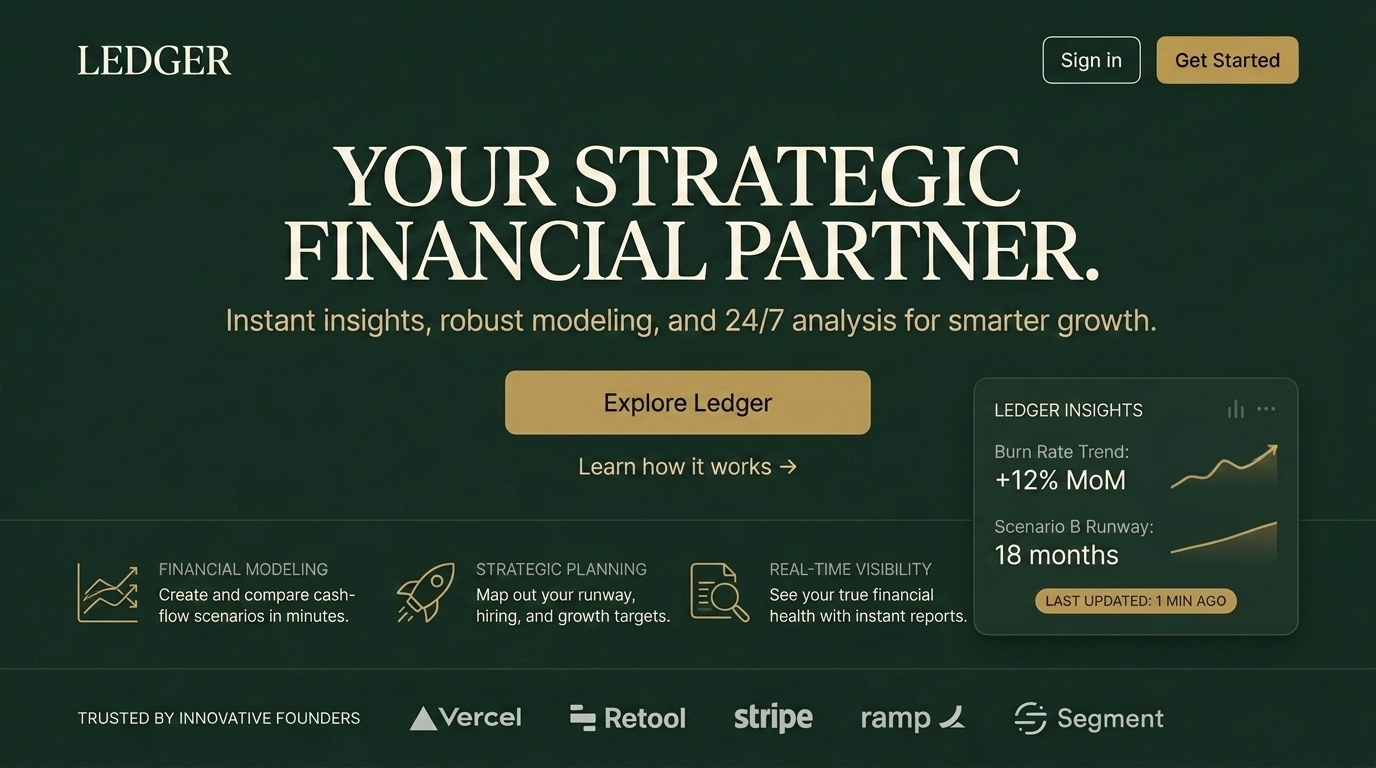 A sleek dashboard displaying financial modeling and strategic planning tools. It highlights insights for smarter growth, including trends and scenarios.
