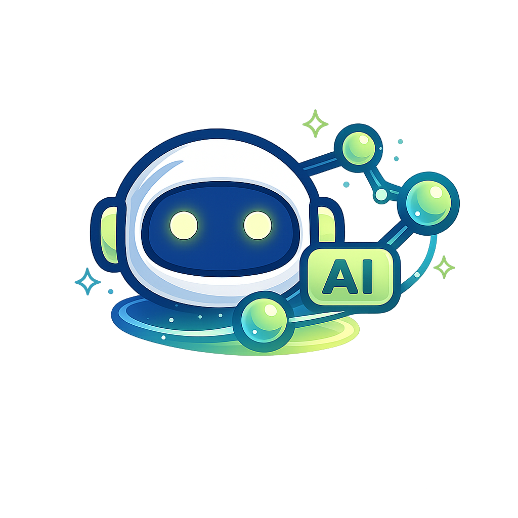 A vibrant and modern illustration of a friendly robot with big eyes, surrounded by molecular structures, symbolizing artificial intelligence and technology.