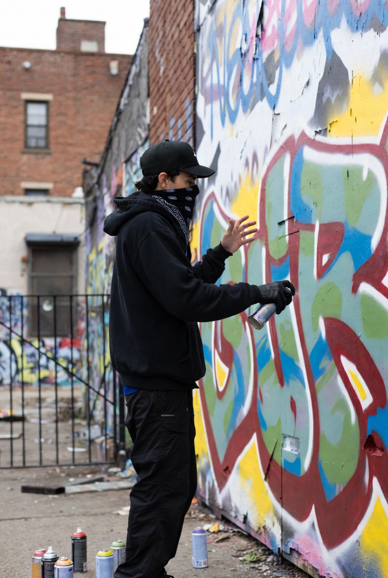 Urban Street Artist Creating Graffiti Mural