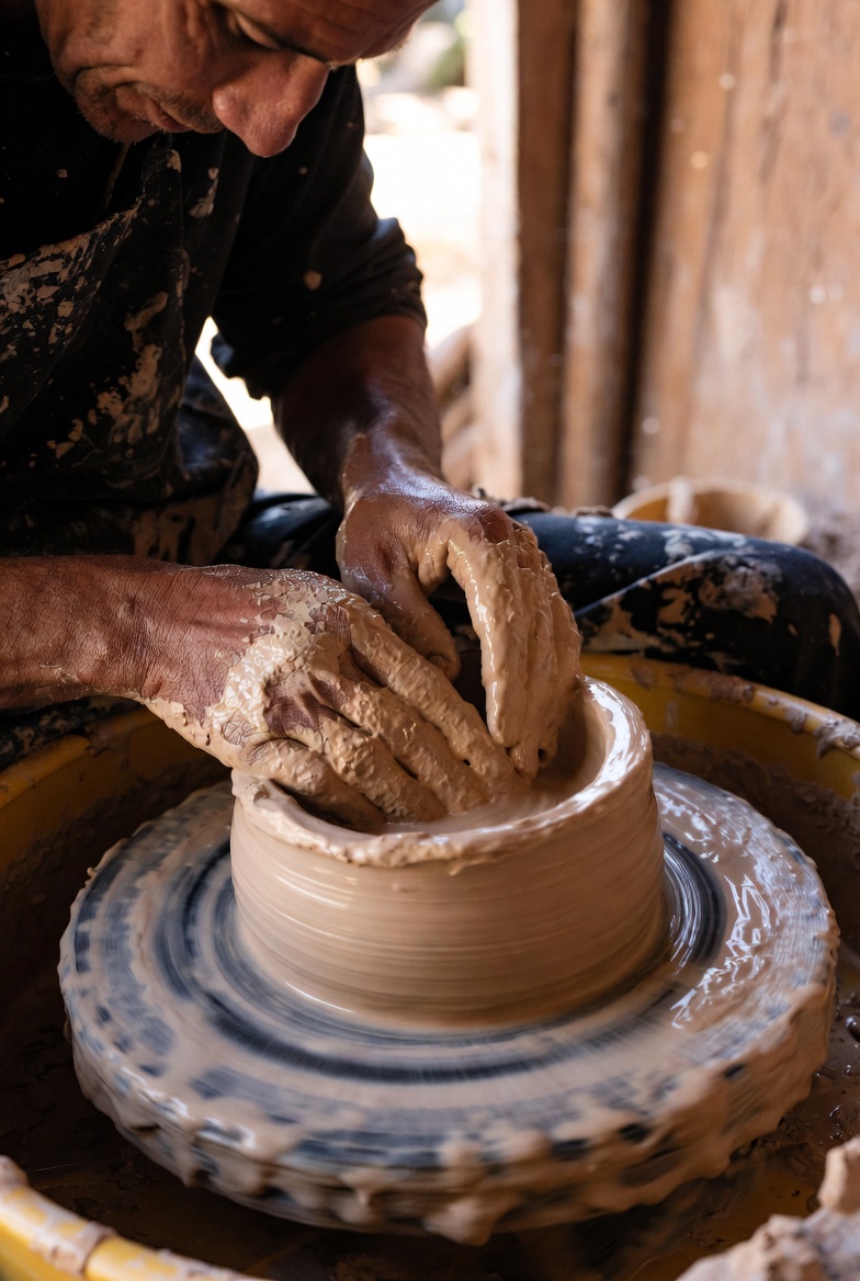 Artisan Shaping Clay on Pottery Wheel