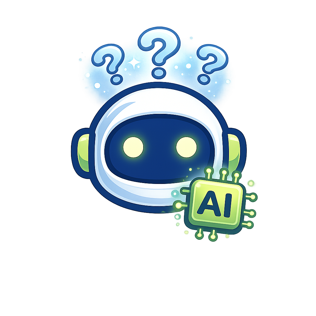 A vibrant cartoon-style robot with a white helmet and blue eyes appears amidst glowing question marks, symbolizing artificial intelligence and curiosity.