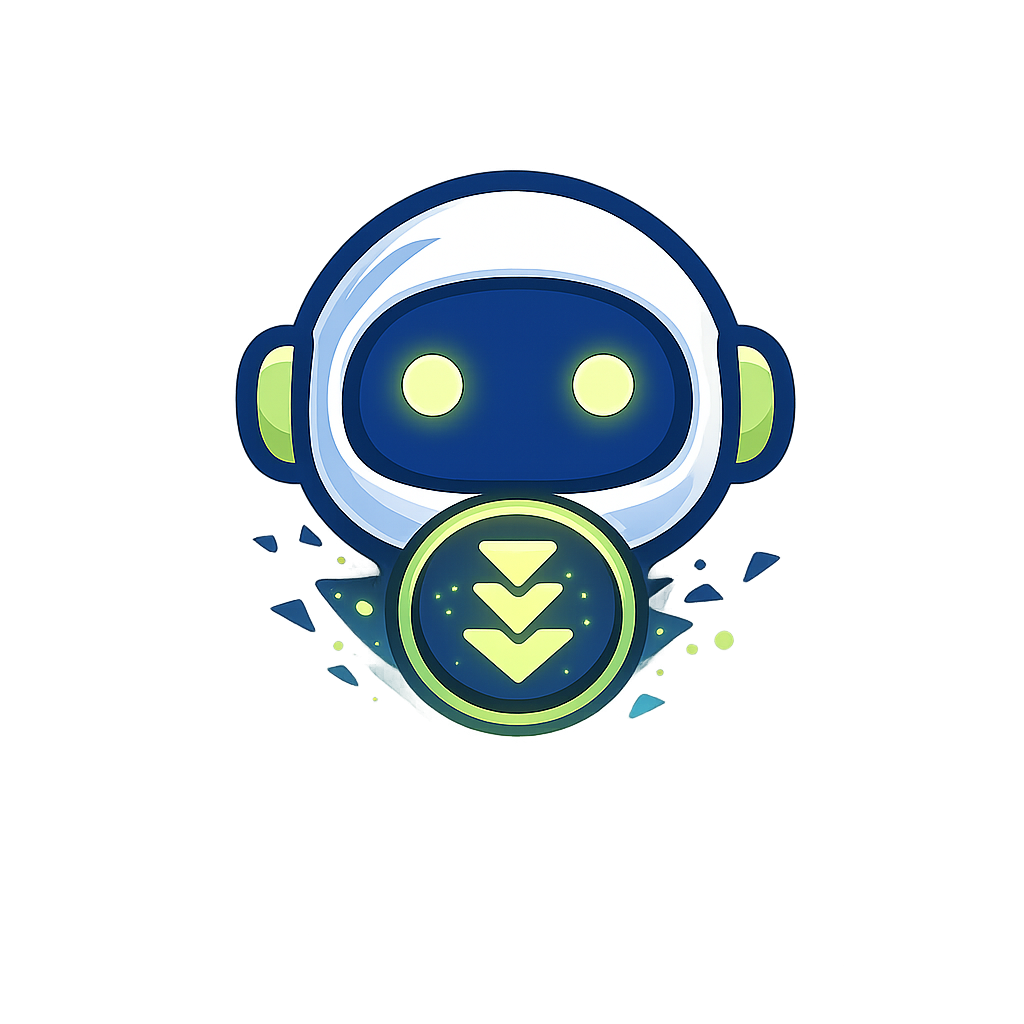 An animated robot character featuring a sleek design with a white helmet and neon blue and green accents. The character has a round face with large eyes and a distinctive breathing mask, surrounded by glowing particles.