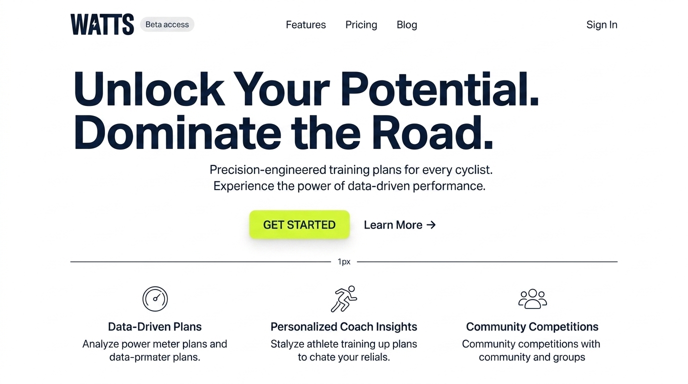 The image showcases a website promoting precision-engineered training plans for cyclists, emphasizing data-driven performance and community engagement.