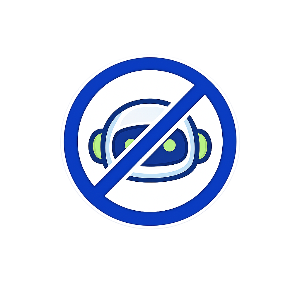 A circular sign displaying a robot icon crossed out, indicating a prohibition against robots. The design features a blue border and a sleek, modern aesthetic.