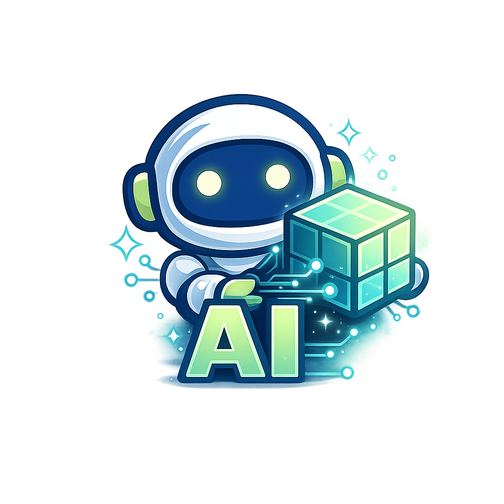 A vibrant illustration of a futuristic robot holding a cube, symbolizing artificial intelligence. The design features glowing elements and a sleek aesthetic.
