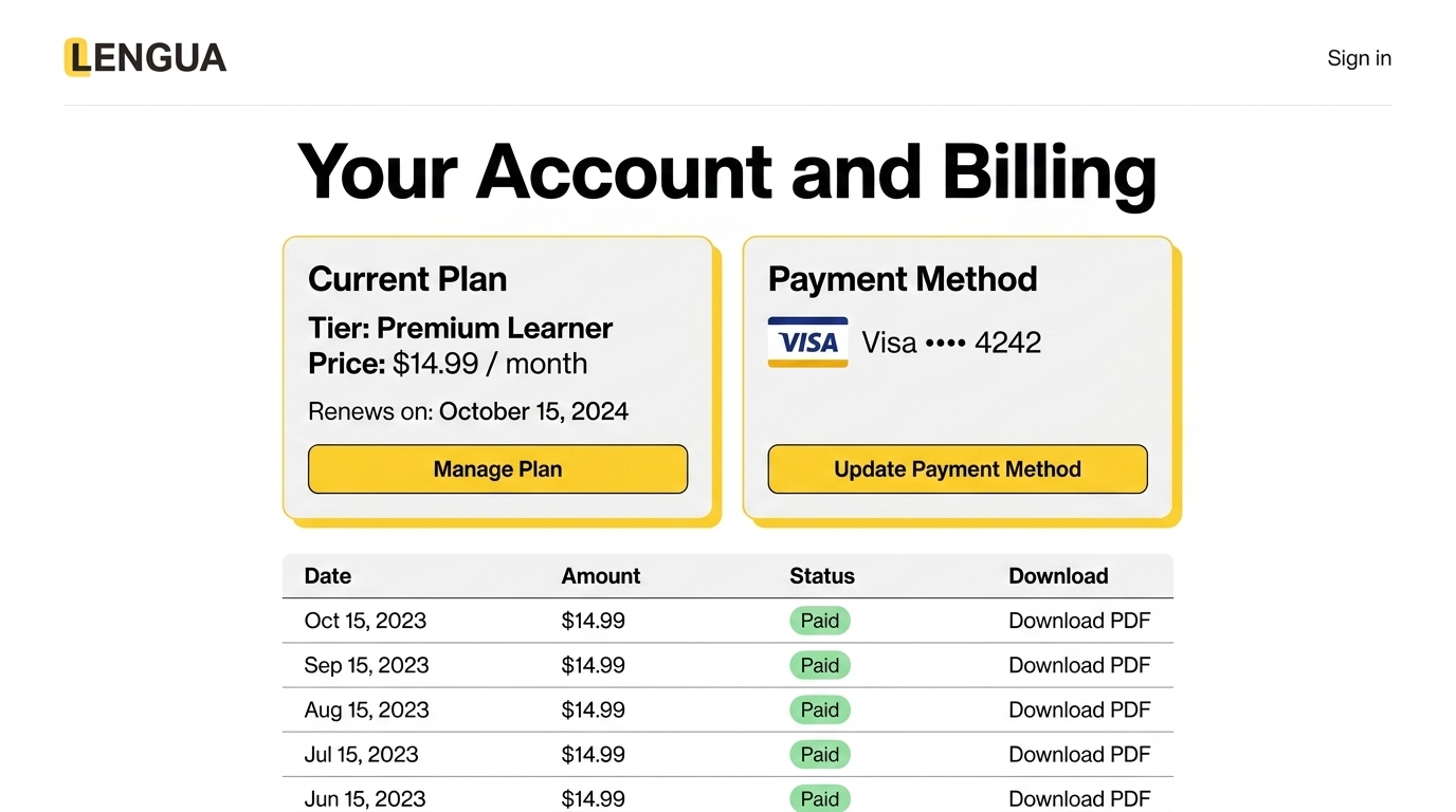 Account Overview and Billing Information for Premium Learner