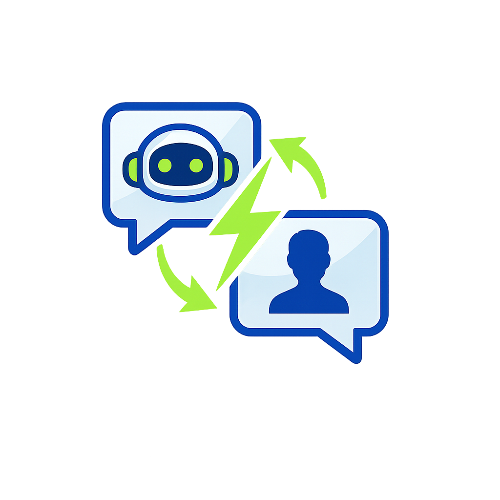 An illustration depicting the interaction between a chatbot and a human user, symbolized by speech bubbles and arrows, emphasizing communication technology.