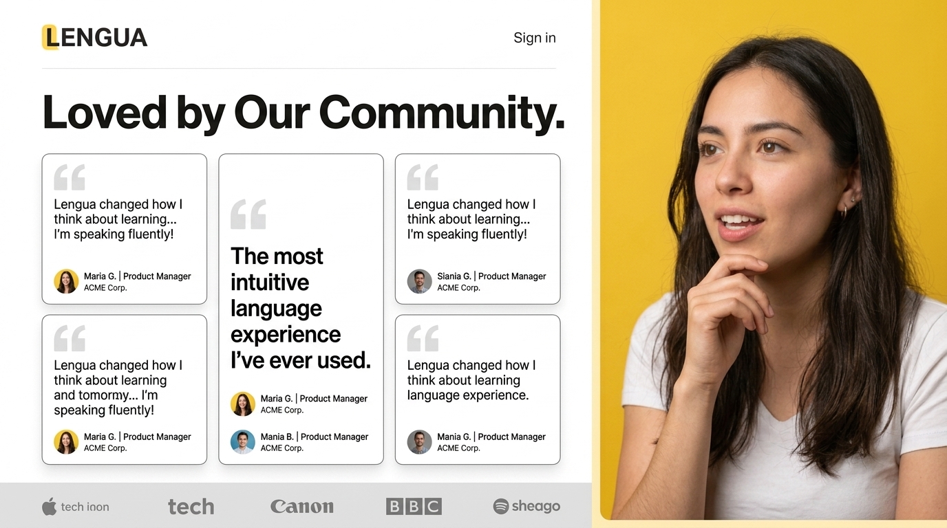 Community Testimonials for Lengua Language Learning Platform