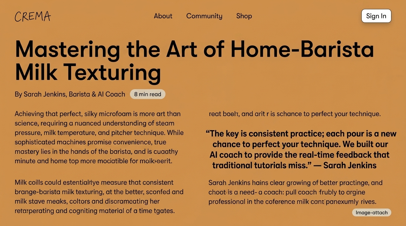 An informative article by Sarah Jenkins on perfecting milk texturing for home baristas, emphasizing practice and technique for better results.