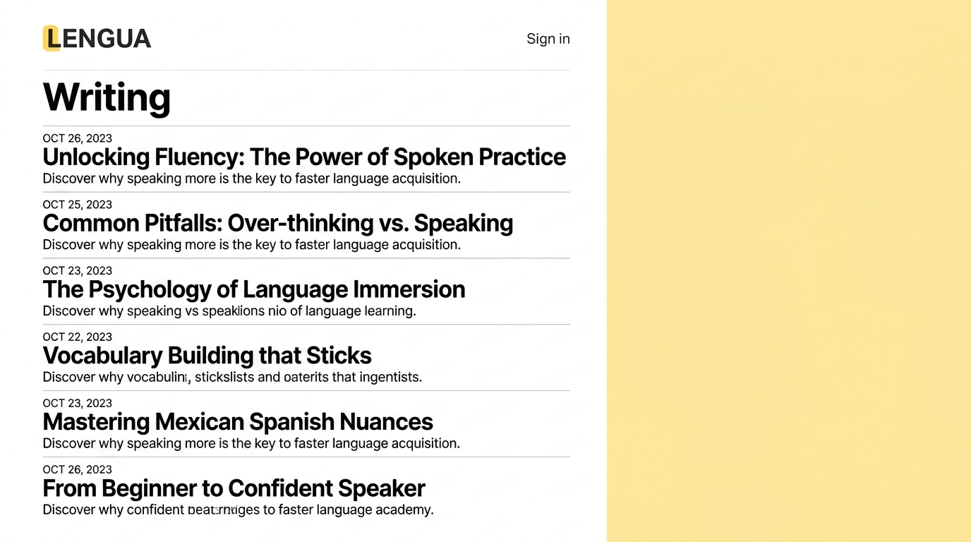 A digital bulletin showcasing various writing topics aimed at enhancing language fluency and acquisition, including spoken practice and language immersion.